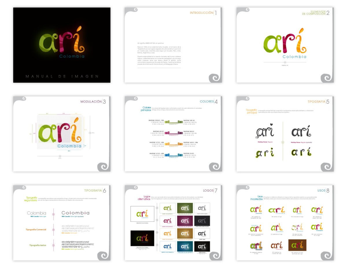 Este documento asegura una identidad visual consistente y reconocible, facilitando su uso por parte de colaboradores y aliados, y fortaleciendo el posicionamiento de Arí Colombia en escenarios culturales y educativos.