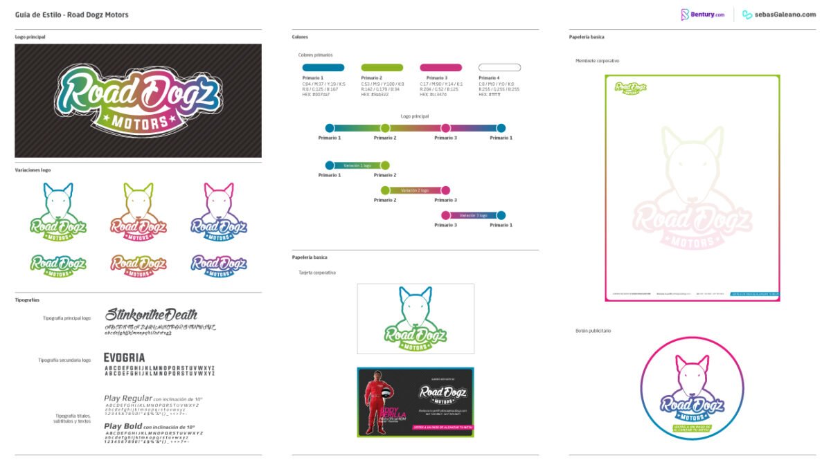 En Bentury, nos sumergimos en la esencia de Road Dogz Motors para desarrollar una identidad visual que reflejara su energía y pasión por el automovilismo. Creamos un logotipo dinámico y una paleta de colores vibrante que capturan la emoción de la velocidad y la camaradería del club.